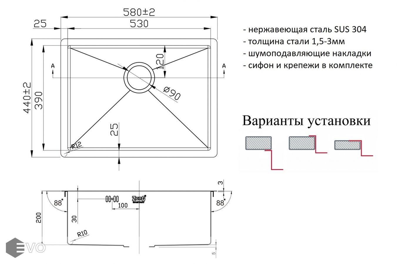 - Тип монтажа: Врезная сверху / Под столешницу / В уровень со столешницей