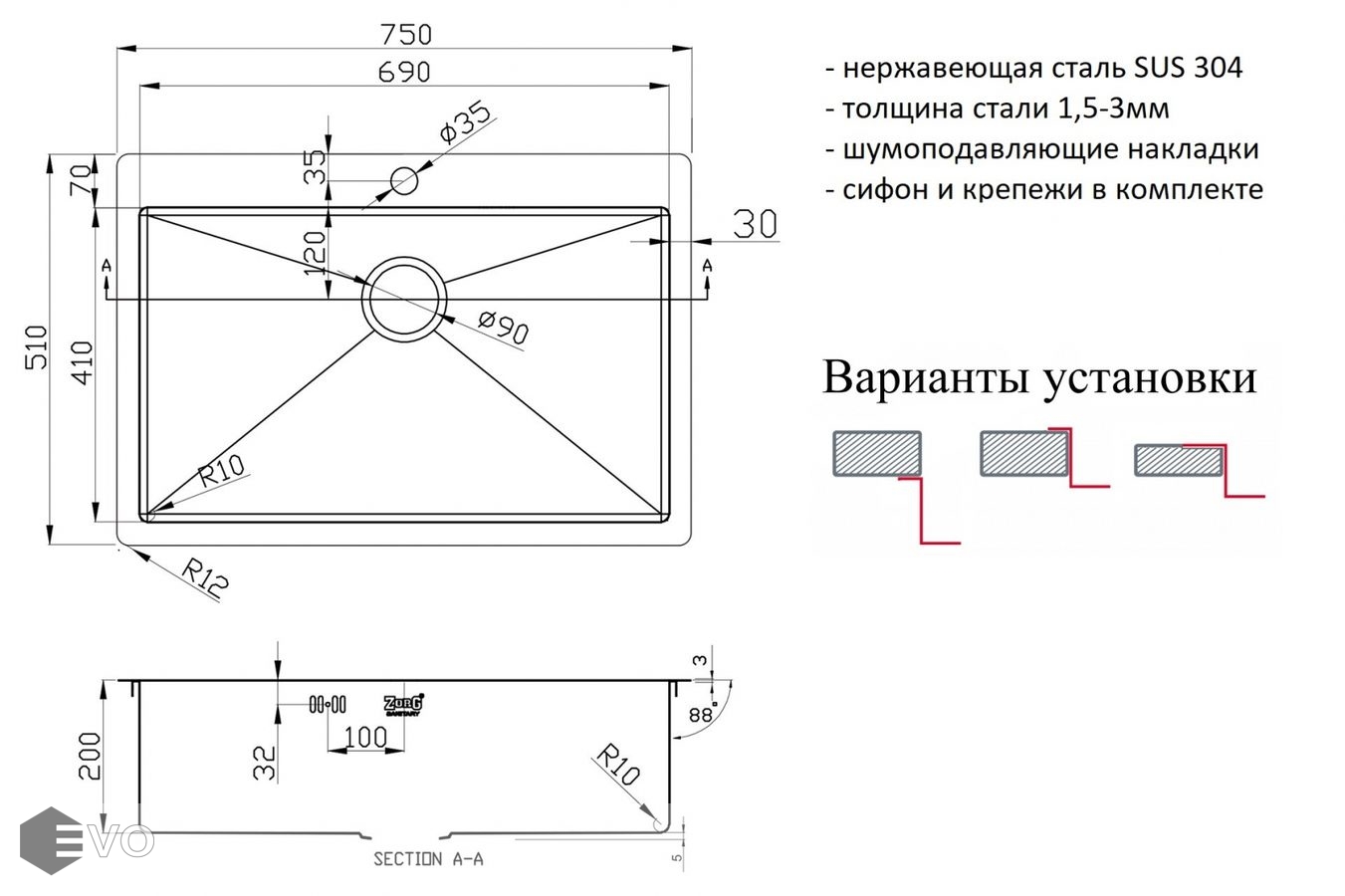 Мойка ZORG PVD 7551 GRAFIT практична, удобна и не требует за собой особого ухода. Всю грязь с поверхности можно легко удалить при помощи обычных гелевых средств, применяемых для мытья посуды.