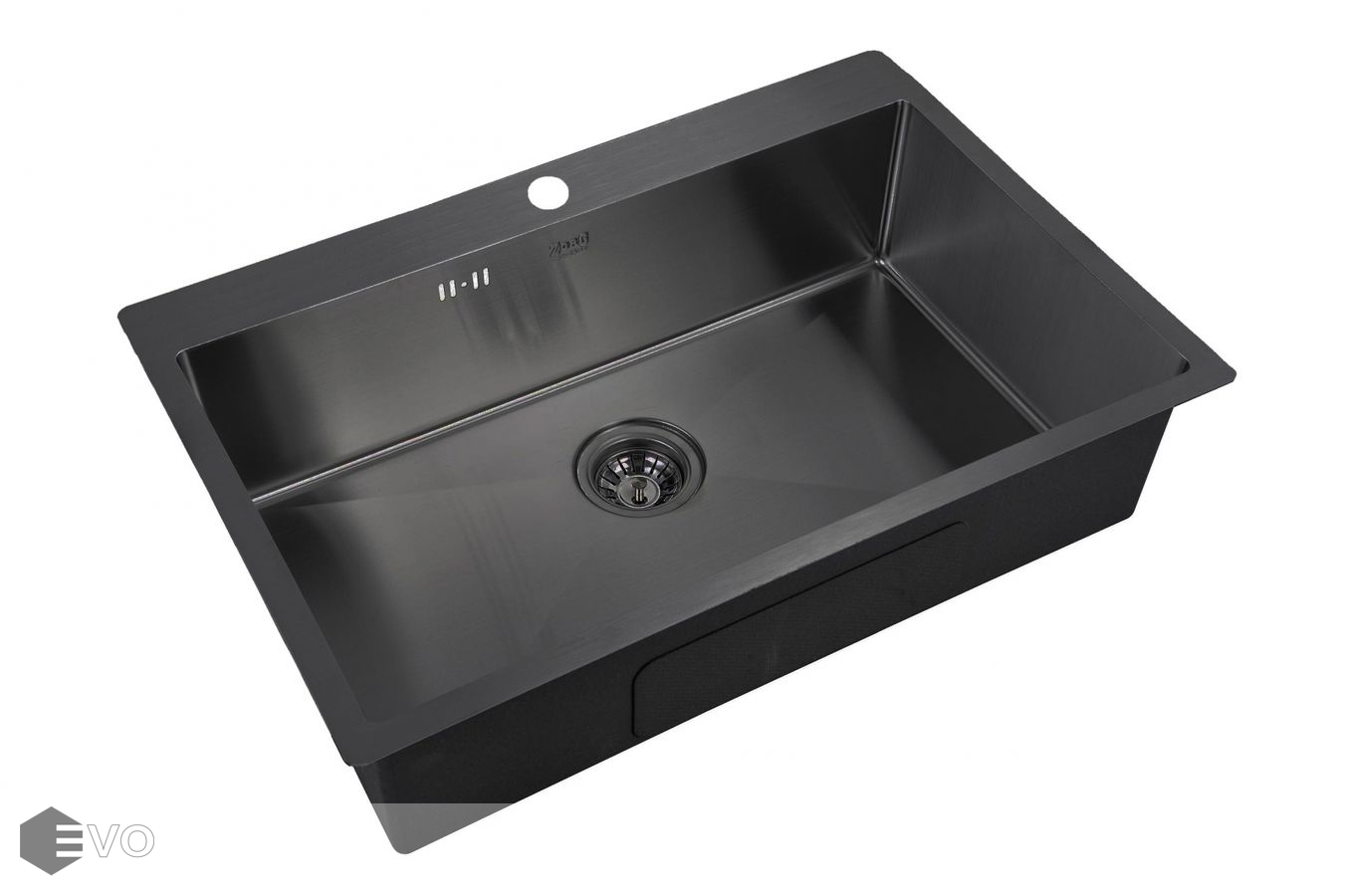 Сама мойка производится из высококачественной нержавеющей стали с последующей специальной PVD-обработкой в цвет графит. Покрытие наносится в специальной вакуумной камере и проникает в поверхность изделия на молекулярном уровне. Молекулы наносимого металла соединяются с нержавеющей сталью и получается красивая благородного цвета кухонная мойка. Такая поверхность прочна и долговечна, не стирается по прошествии времени.