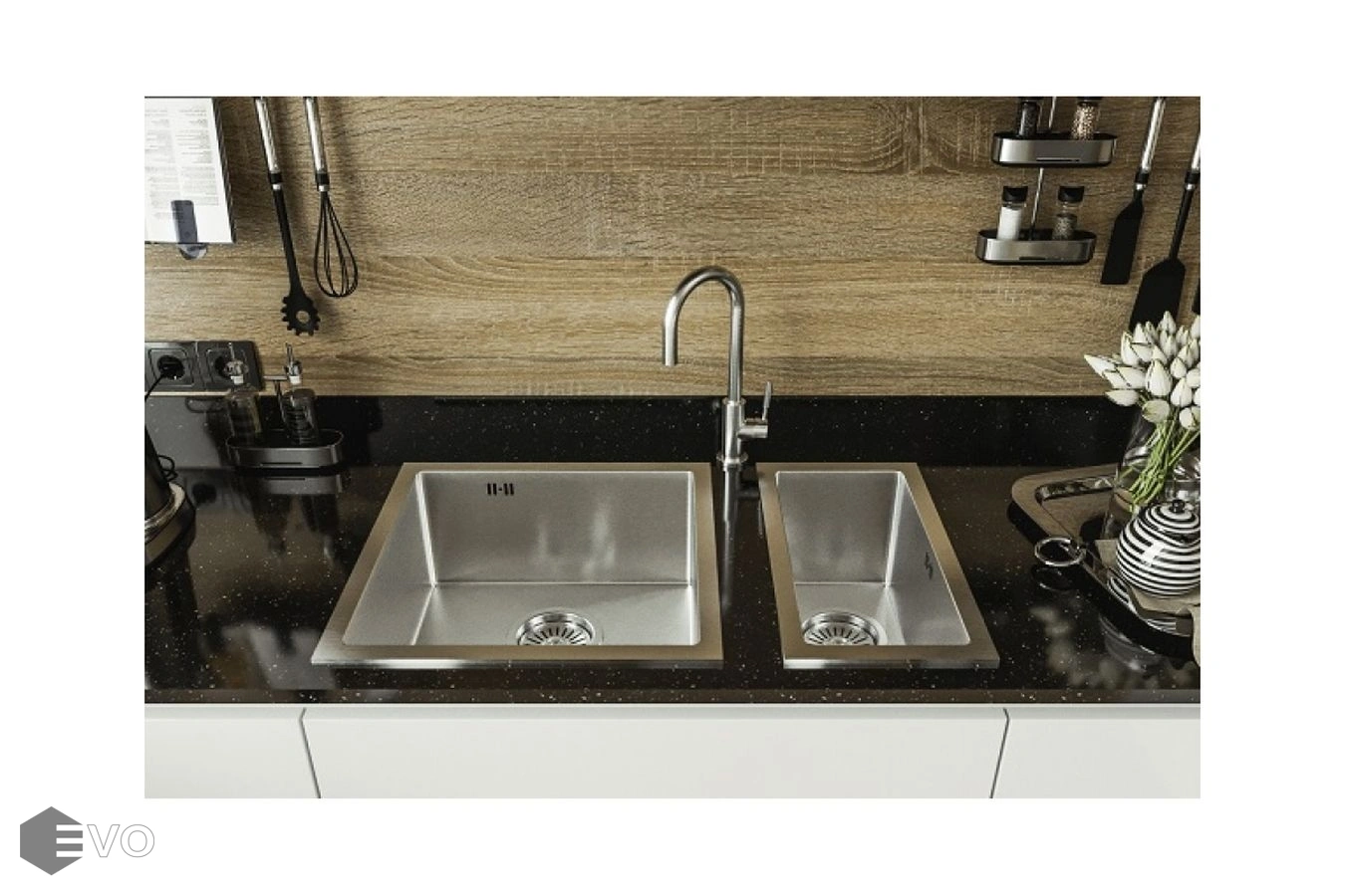 Небольшие размеры дают возможность установить на столешницу, даже с очень ограниченными размерами. Особенно интересно - исполнение в комбинированном варианте, когда рядом находятся две чаши разного размера. Такая конфигурация представлена на фото в галерее. Совместное использование с дополнительными аксессуарами, станет по настоящему функциональным и приятным!