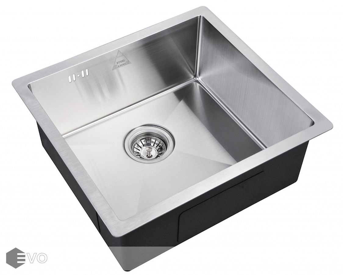 Чаша мойки выполнена из нержавеющей стали толщиной 0.9 мм, а кант (бортик) имеет толщину 2 мм, что позволяет мойке идеально ложиться на поверхность столешницы. Скругленные внешние и внутренние углы также придают мойке более эстетичный внешний вид и облегчают уход за поверхностью в районе углов мойки.