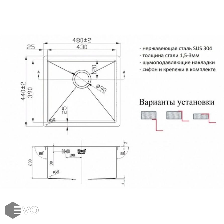 - глубокая вместительная моечная чаша выполнена из нержавеющей стали марки SUS 304 ( ГОСТ 08Х18Н10Т )