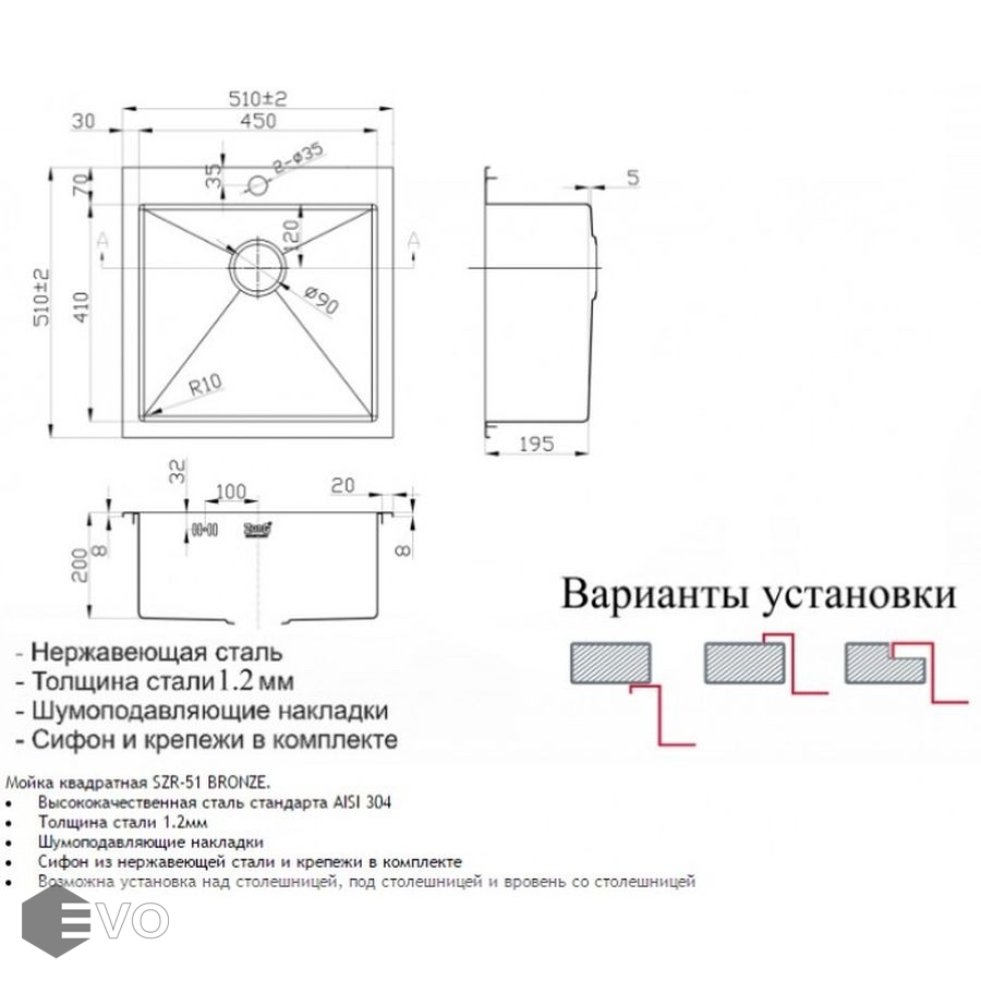 Кухонная мойка Zorg SZR-51 bronze с поверхностью PVD, выполненная под бронзу, представляет коллекцию моек ZORG PVD.
