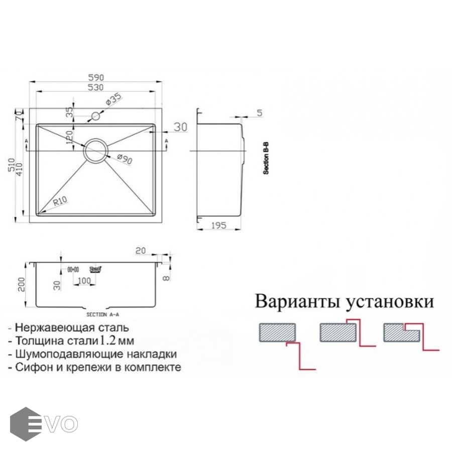 - звукопоглощающее покрытие и накладки с обратной стороны мойки