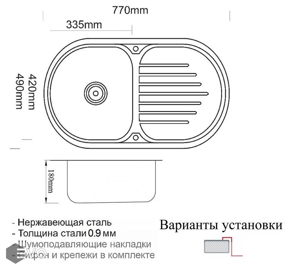 - ФОРМА МОЙКИ: Одна чаша с крылом