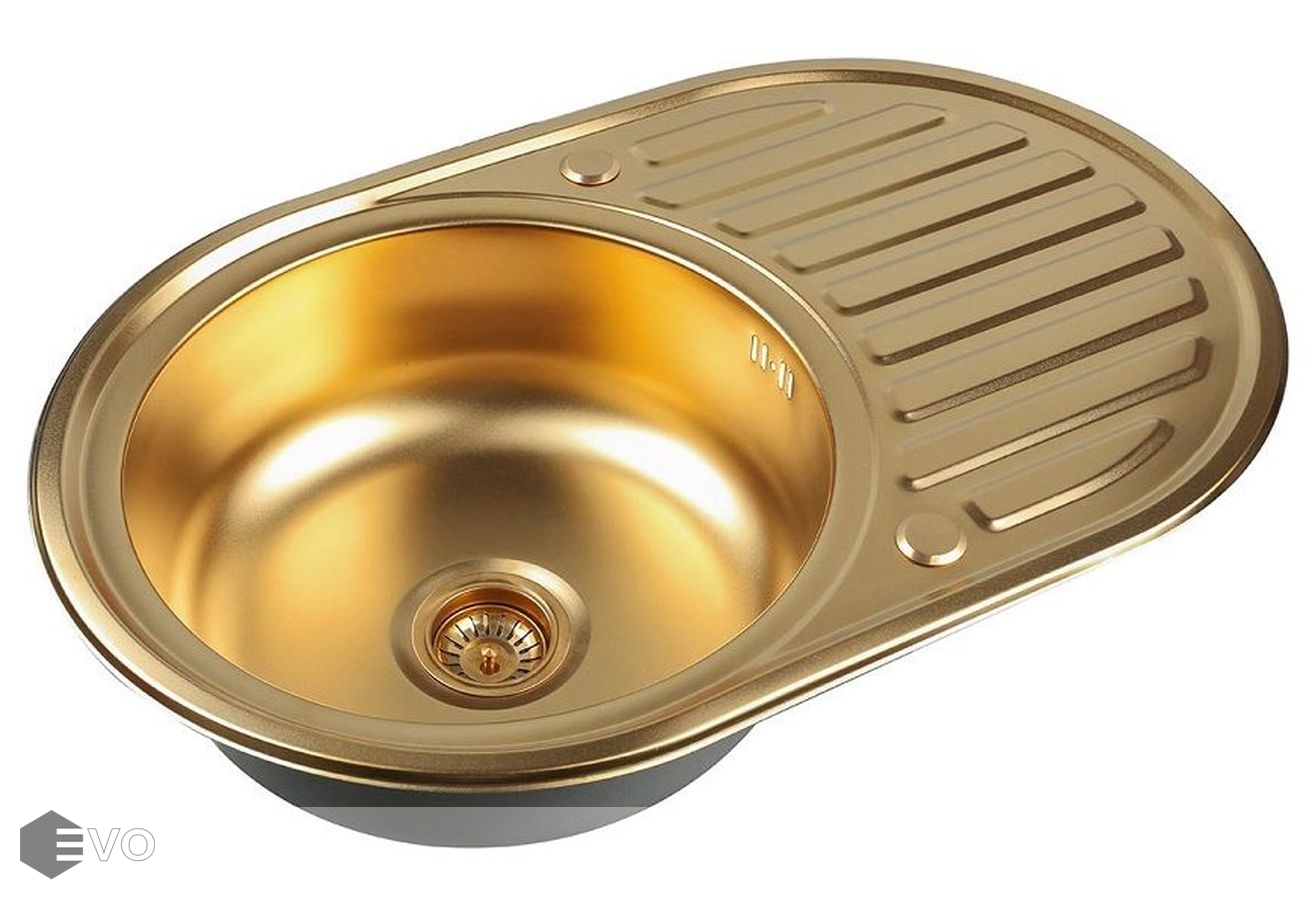 Сама мойка производится из высококачественной нержавеющей стали с последующей специальной PVD-обработкой в цвет бронза. Покрытие наносится в специальной вакуумной камере и проникает в поверхность изделия на молекулярном уровне. Молекулы наносимого металла соединяются с нержавеющей сталью и получается красивая благородного цвета кухонная мойка. Такая поверхность прочна и долговечна, не стирается по прошествии времени.
