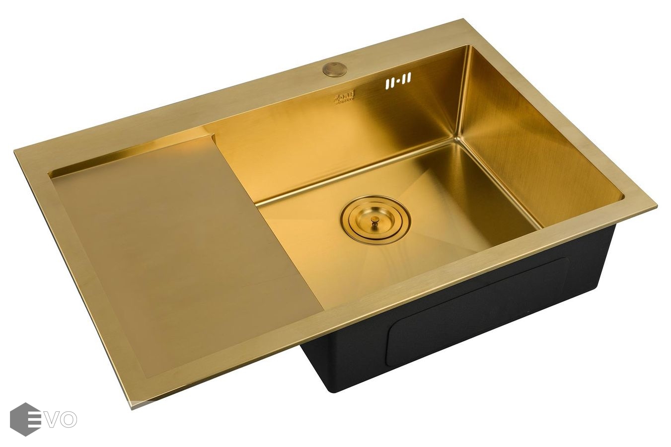 Сама мойка производится из высококачественной нержавеющей стали с последующей специальной PVD-обработкой в цвет бронза. Покрытие наносится в специальной вакуумной камере и проникает в поверхность изделия на молекулярном уровне. Молекулы наносимого металла соединяются с нержавеющей сталью и получается красивая благородного цвета кухонная мойка. Такая поверхность прочна и долговечна, не стирается по прошествии времени.