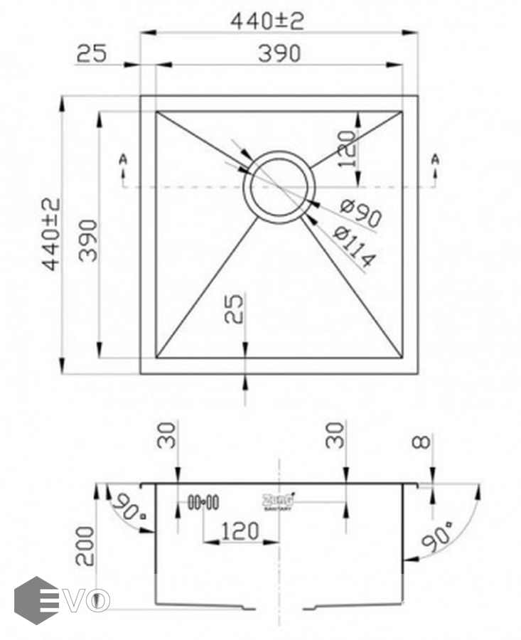 Кухонная мойка ZORG X-4444 для подстольного монтажа представлена в серии ZORG X INOX.