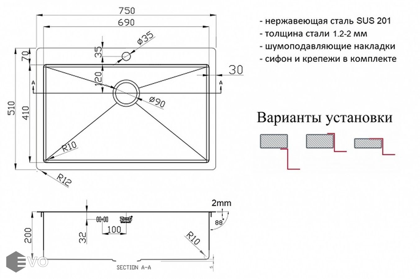 • МОДЕЛЬ МОЙКИ: Необорачиваемая