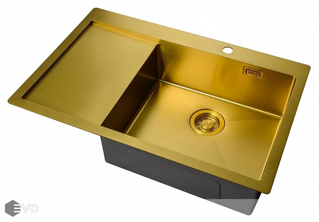 Сама мойка производится из высококачественной нержавеющей стали с последующей специальной PVD-обработкой. Покрытие наносится в специальной вакуумной камере и проникает в поверхность изделия на молекулярном уровне. Молекулы наносимого металла соединяются с нержавеющей сталью и получается красивая благородного цвета кухонная мойка. Такая поверхность прочна и долговечна, не стирается по прошествии времени.