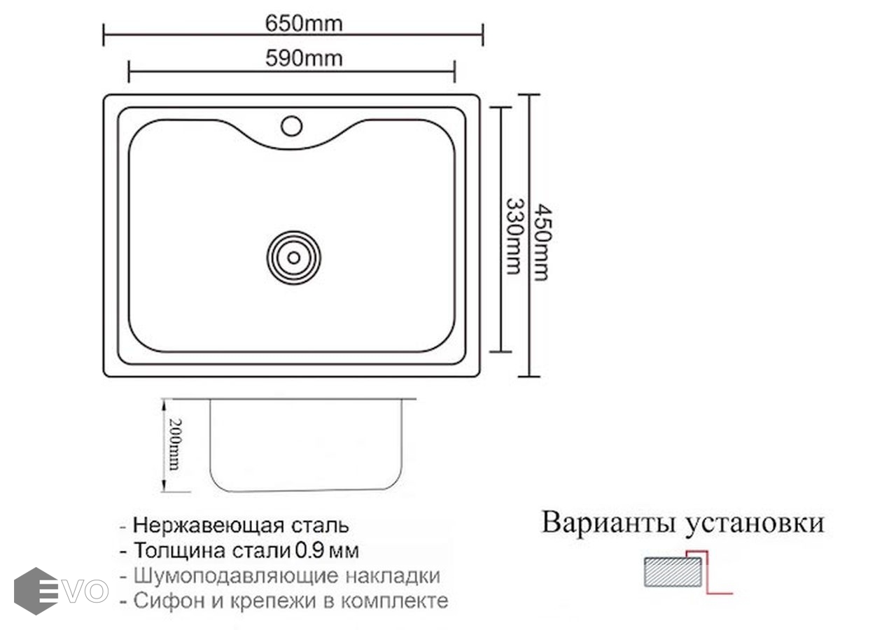 - СПОСОБ УСТАНОВКИ: Сверху на столешницу