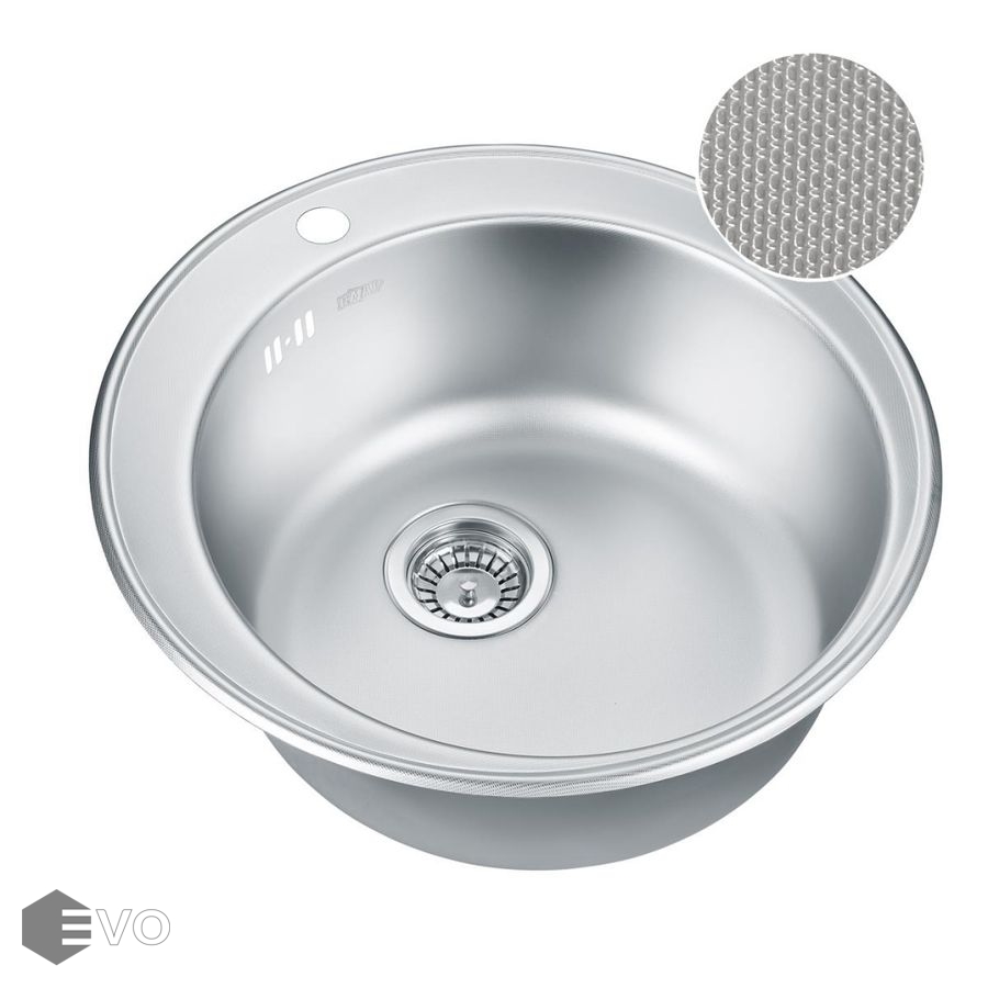 Круглая мойка эконом класса из нержавеющей стали. Поверхность данной модели мойки бывает: глянец / декор / электролиз.