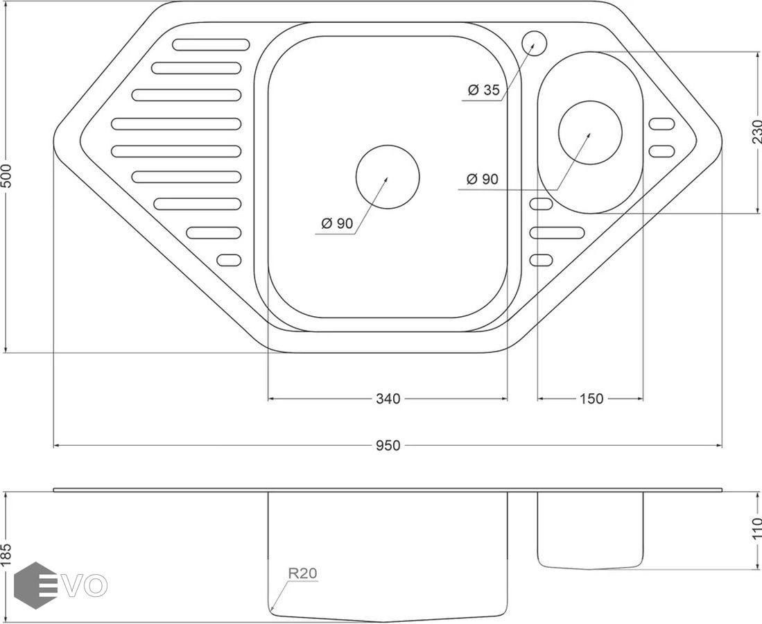 Мойка EMAR 9550C сделана из нержавеющей стали с глянцевой поверхностью.