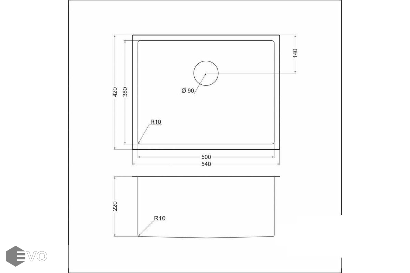 - Размеры мойки: 540х420 мм