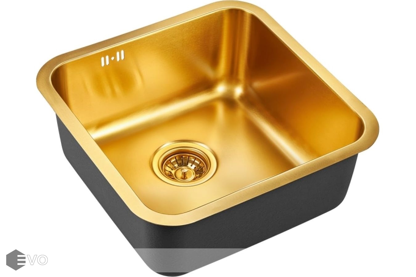 - Мойка с PVD покрытием привлекает к себе внимание цветом