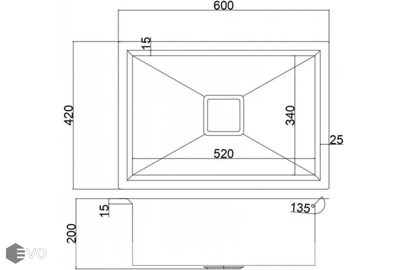 - Размер мойки: 600х420 мм