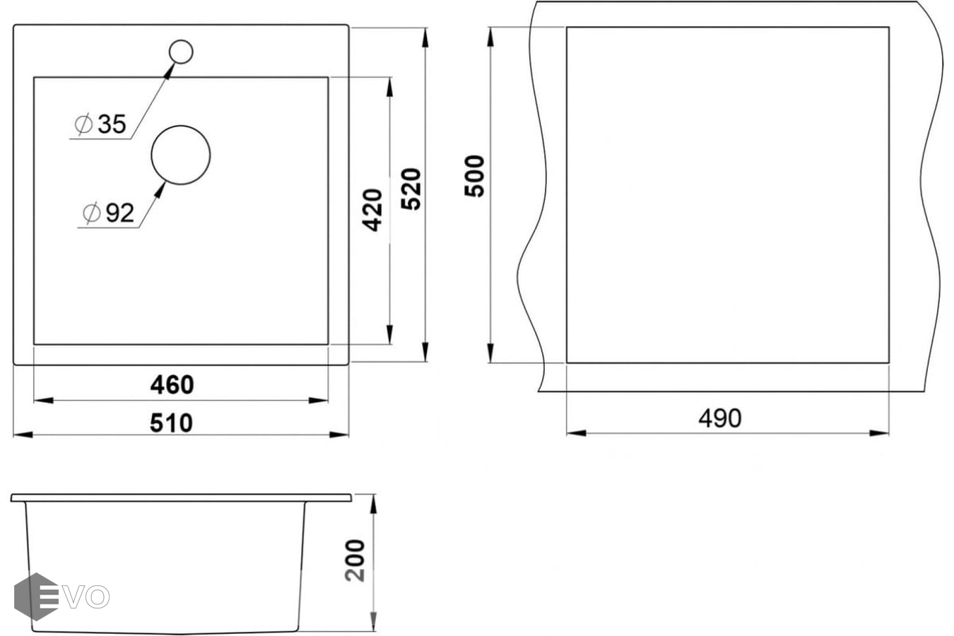 - Габаритные размеры мойки: 510x505 мм
