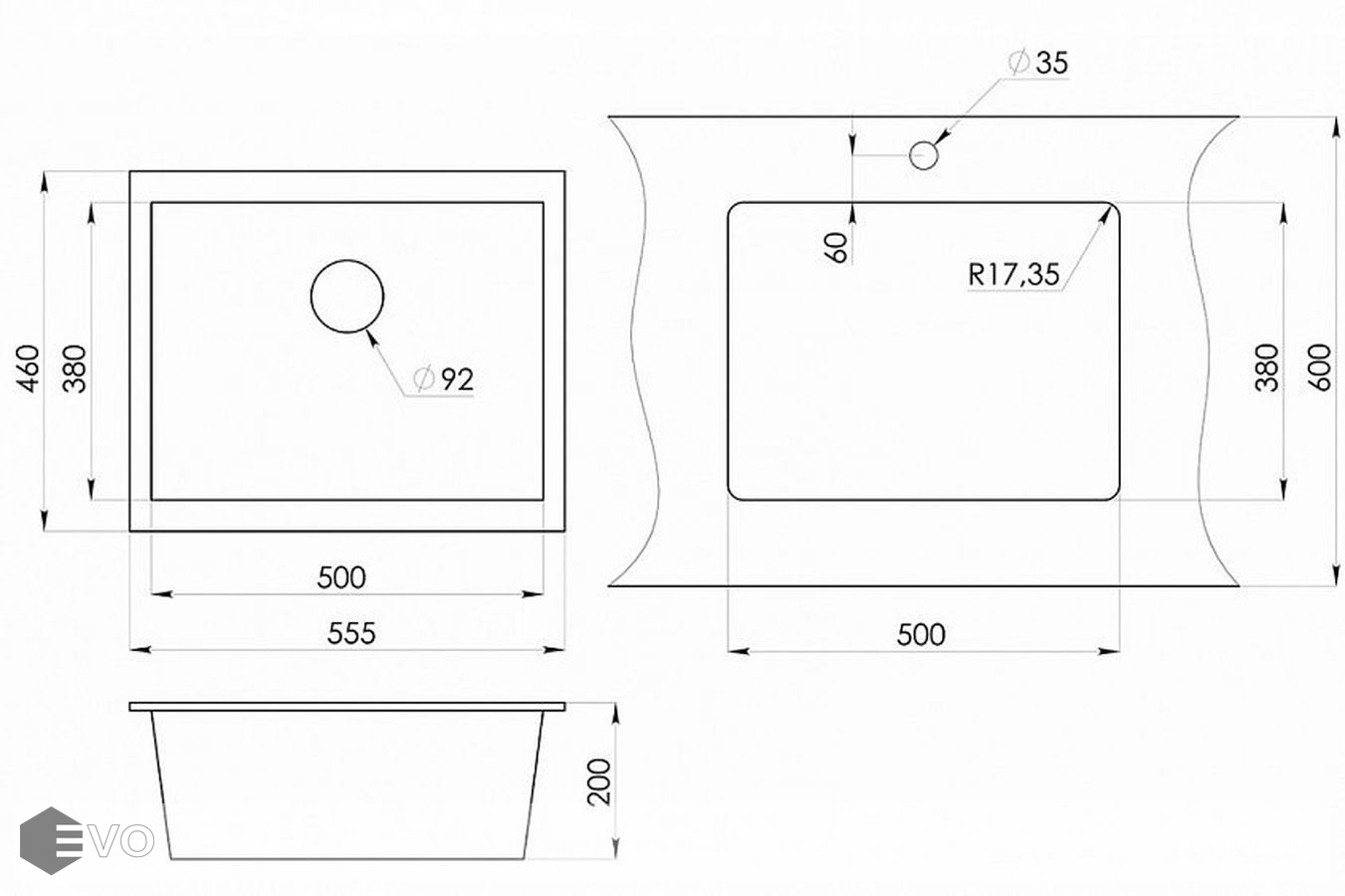 - Возможность установки: 1. под столешницу; 2. вровень со столешницей; 3. сверху в столешницу