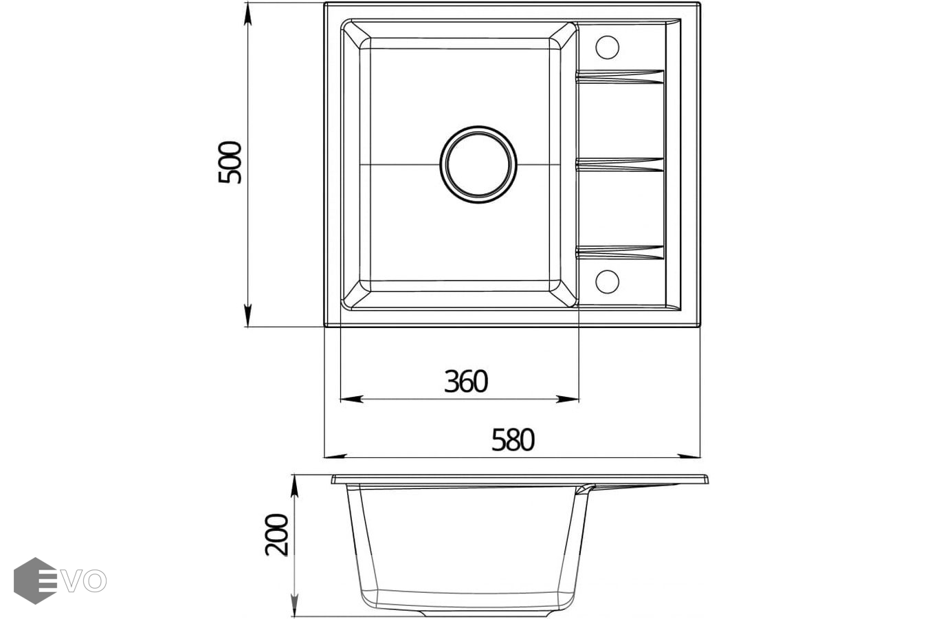 Кухонная кварцевая мойка EMAR EMQ-1580.Q, производится из кварцевой крошки и смолы. Идеально подходит для компактных и современных кухонь.