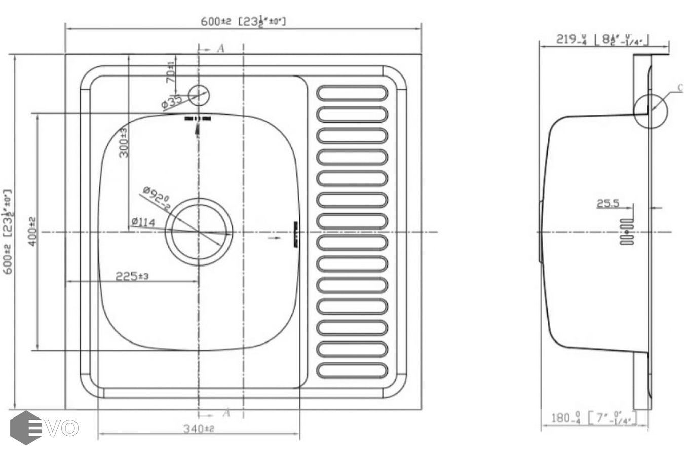 - Диаметр сливного отверстия: 3 1/2 дюйм