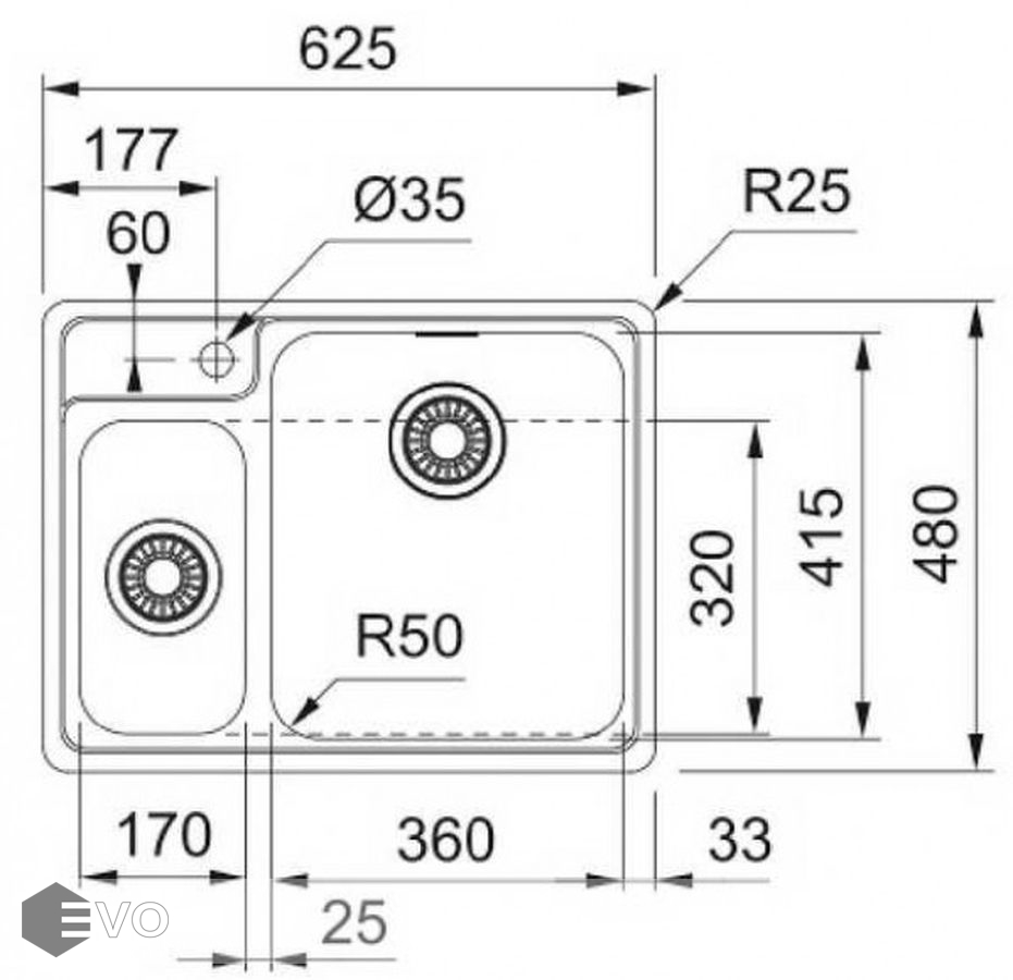 Мойка для кухни из нержавеющей стали Franke BCX 260 TL шириной 62,5 сантиметр.