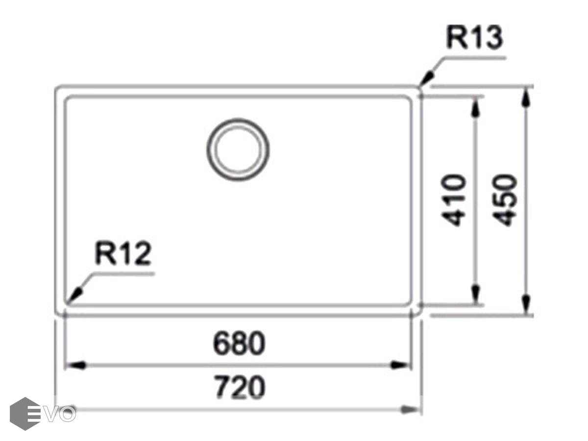 Размер чаши: 680x410 мм, R12 мм