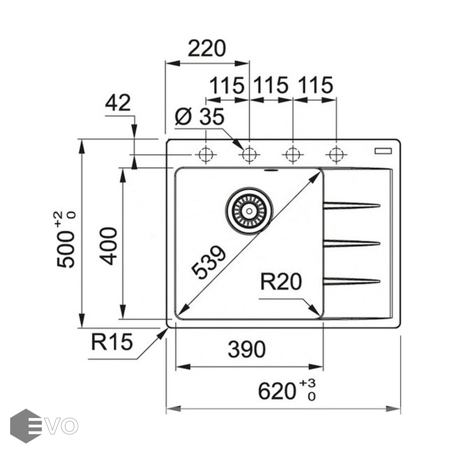 • Размеры мойки, см: 62х50х20