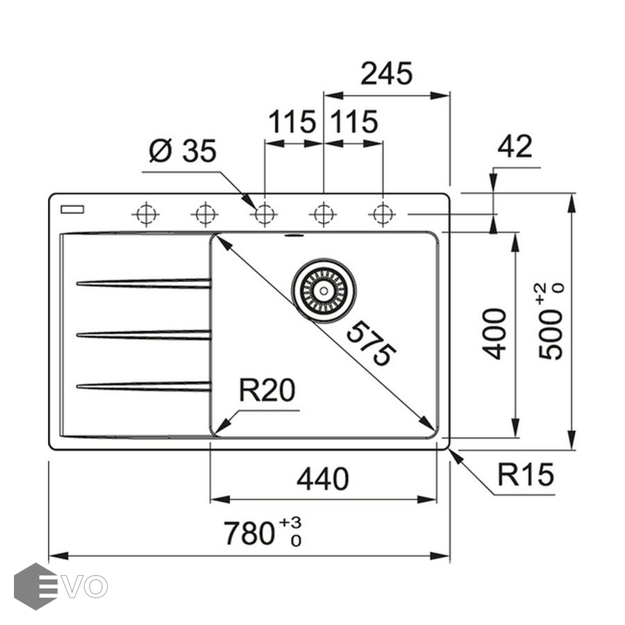 Мойки комплектуются выпуском 3,5 дюйма, который позволит установить измельчитель пищевых отходов, а механизм крепления FASTFIX® обеспечит легкий монтаж в столешницу от 12 мм