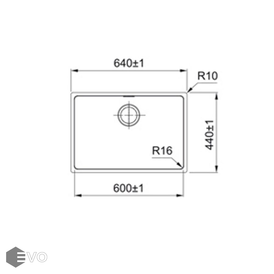Стальная мойка FRANKE FELIX FEX 110-60 с установкой под столешницу. Обратите внимание - мойка подстольного монтажа, поэтому отверстие под смеситель отсутствует.