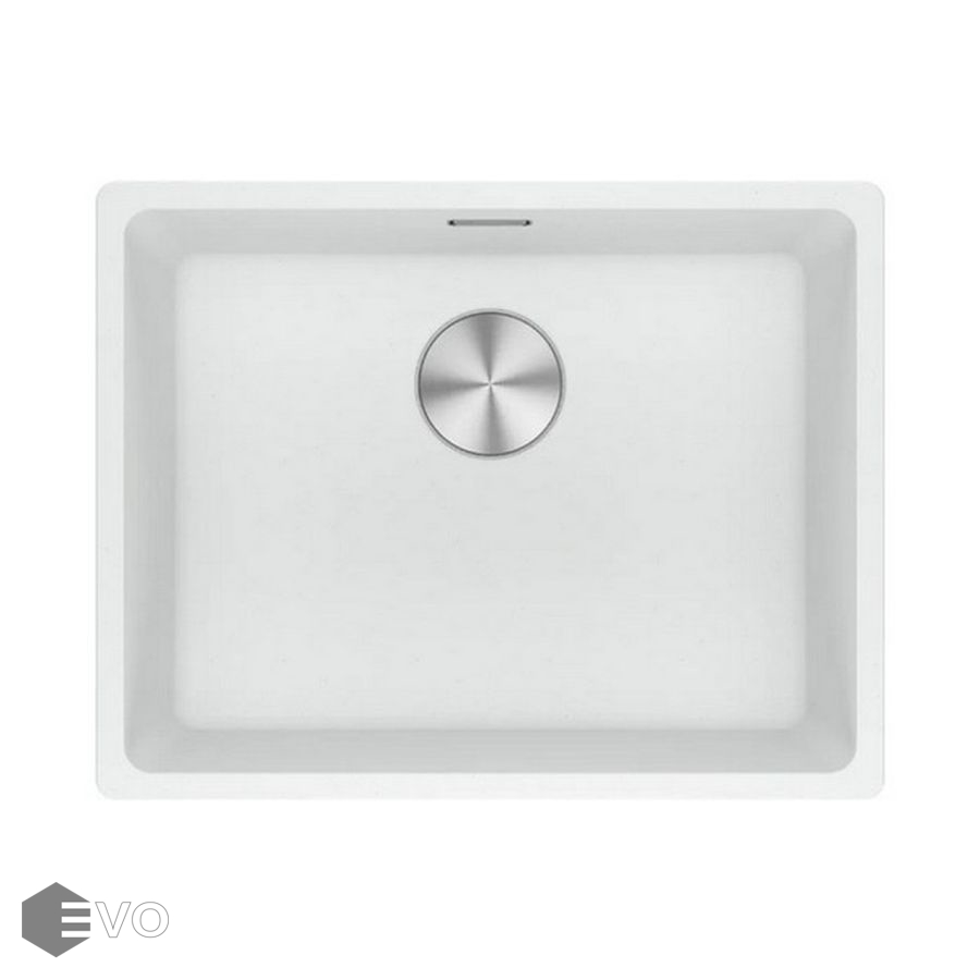 Мойка из запатентованного материала FRAGRANITE®, врезная под столешницу, прямоугольная с переливом и декоративной накладкой на выпуск из нержавеющей стали, вентиль-автомат, сифон.