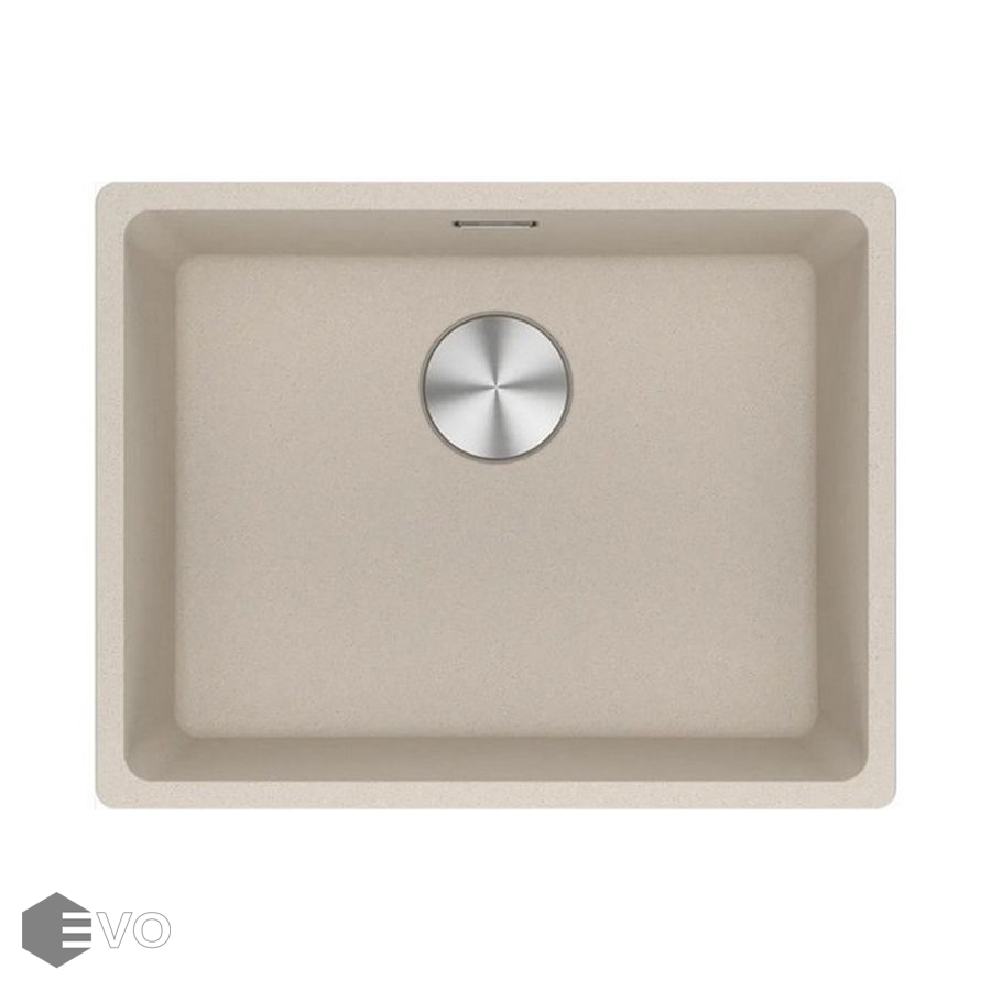 Мойка из запатентованного материала FRAGRANITE®, врезная под столешницу, прямоугольная с переливом и декоративной накладкой на выпуск из нержавеющей стали, вентиль-автомат, сифон.