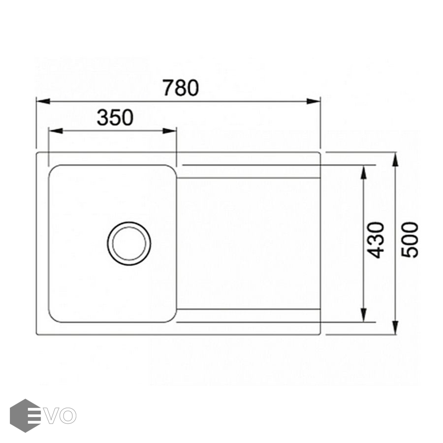 Мойка из материала Tectonite (композитный полимер), врезная, прямоугольная с декоративным переливом, оборачиваемая.