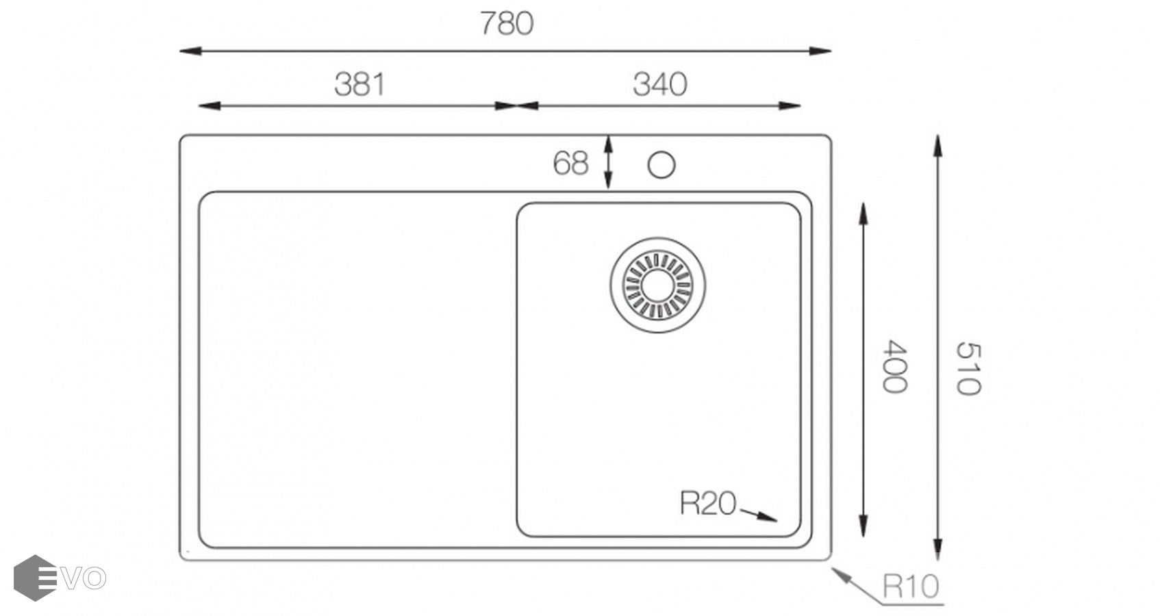 TopZero Micro MM780.510 - элегантная одночашевая мойка для стандартного врезного монтажа или в один уровень со столешницей.