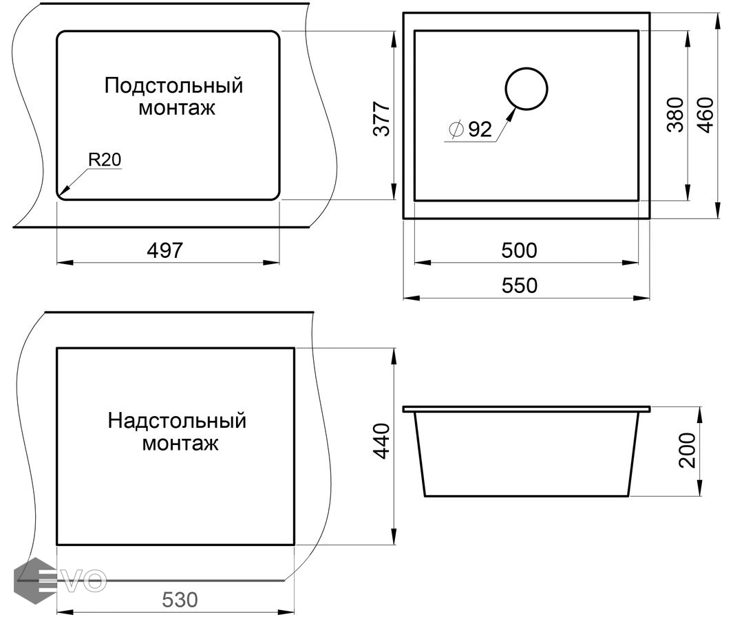 - Монтаж: Врезная/Под столешницу/В один уровень