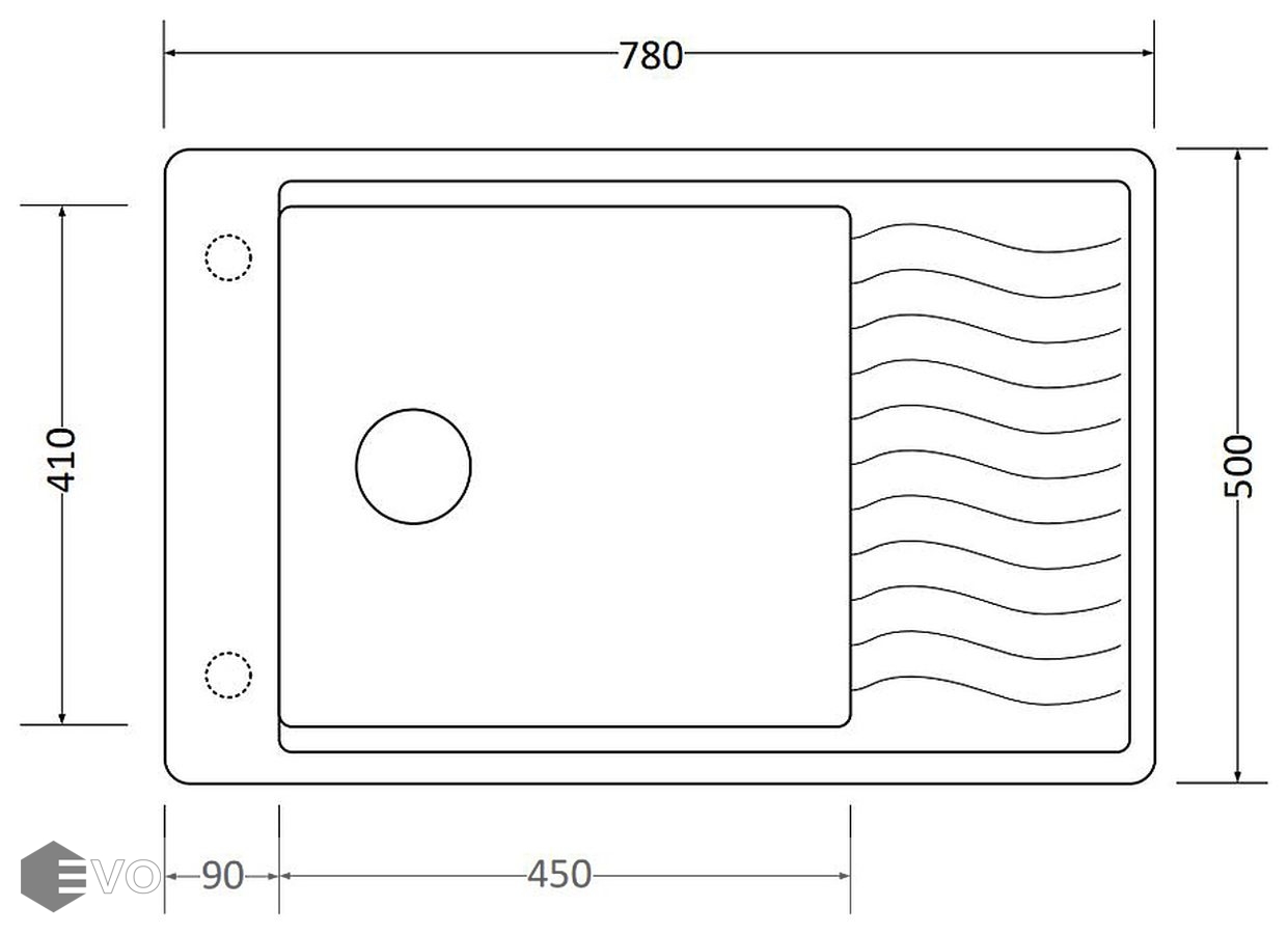 Крыло-сушилка со сливными желобками служит подставкой для посуды и продуктов.