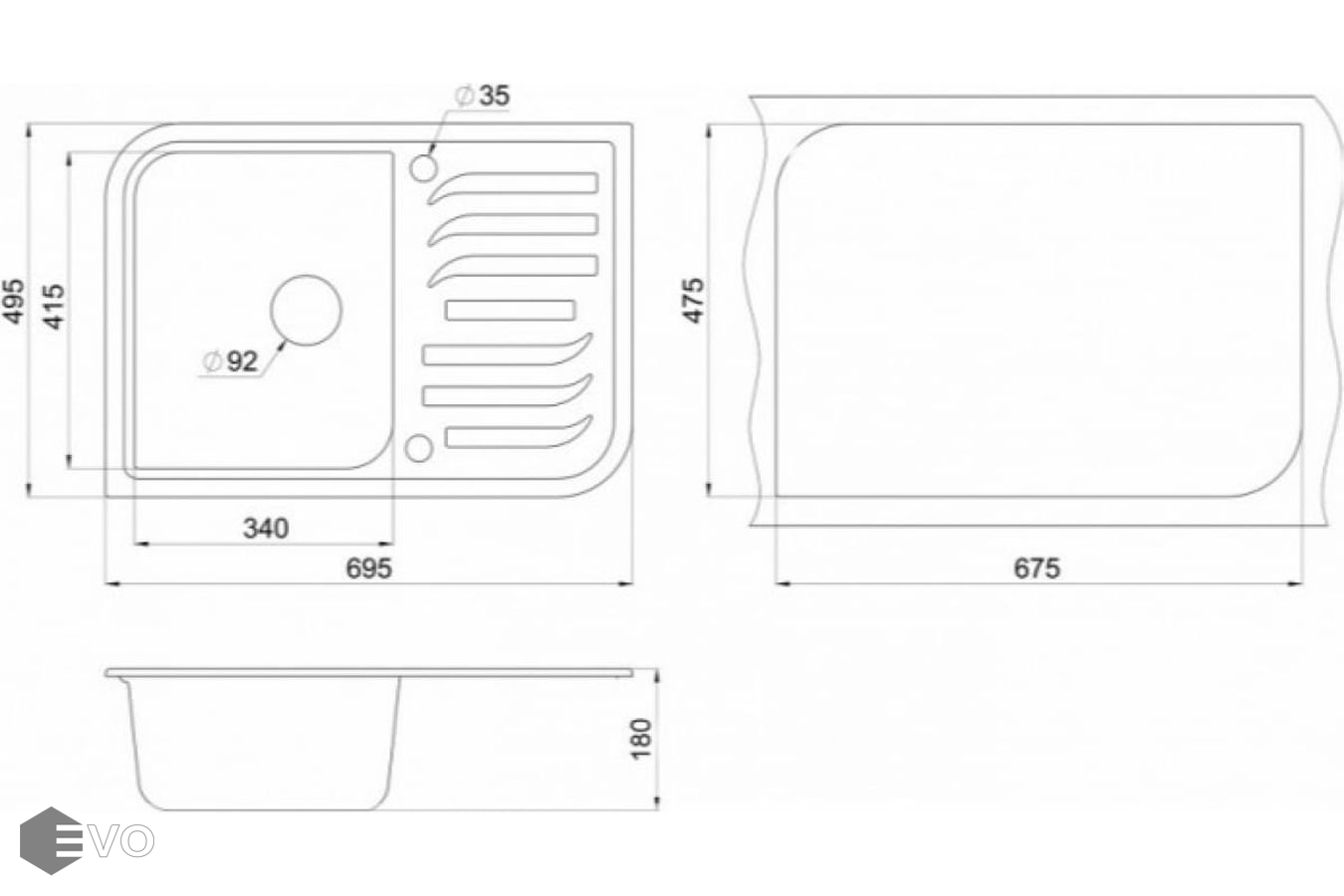 Мойка EMAR EMQ-1695.Q - из кварцевой крошки и смолы. Идеально подходит для компактных классических и современных кухонь.