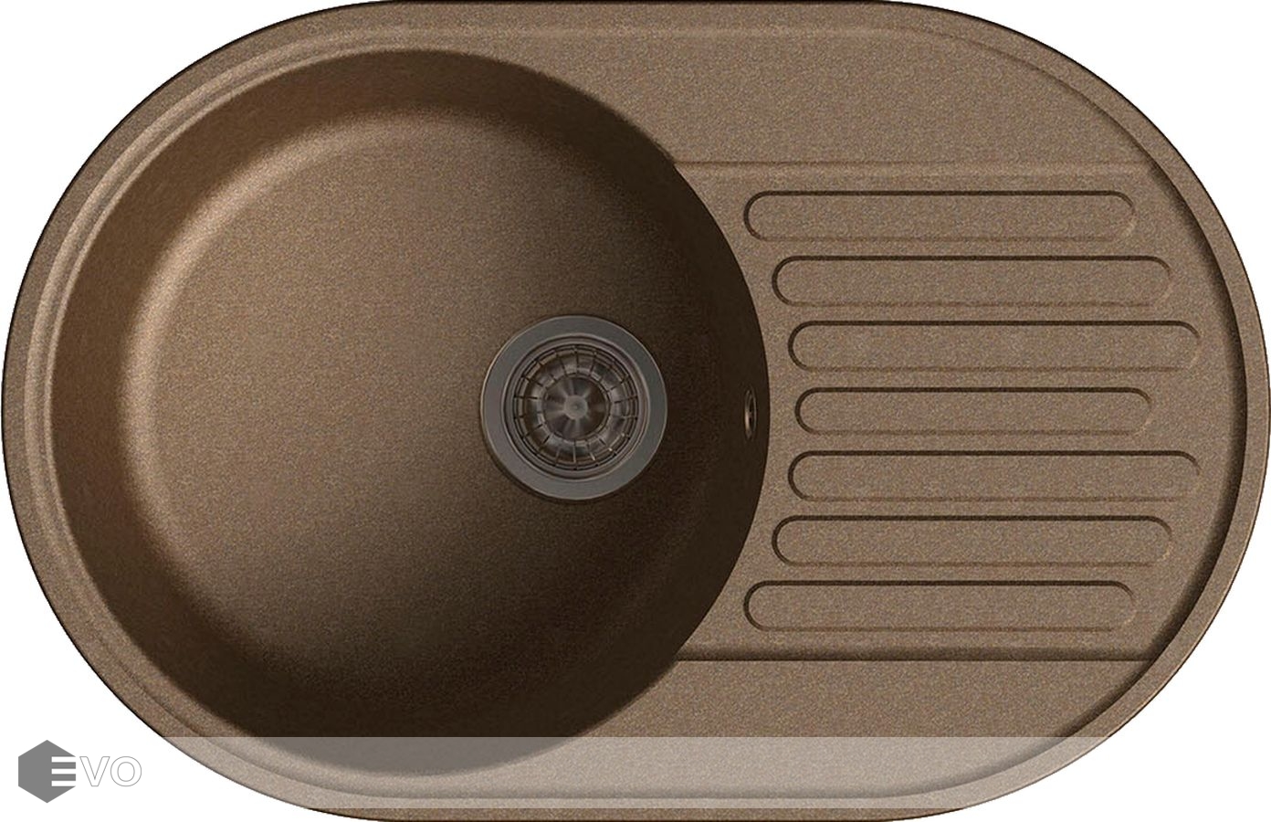 Модель овальной формы изготавливается в России из экологически чистого и долговечного материала. Искусственный гранит состоит из кварцевой крошки и композитной смолы (82% и 18% соответственно), объединяя в себе износостойкость и пластичность. Поверхность изделия устойчива к перепадам температуры, ультрафиолетовым лучам, ударам и царапинам. Оборачиваемая мойка цвета шоколад станет отличным дополнением кухонного интерьера в стилях: хай-тек, скандинавский, минимализм, классический, ампир. Покрытие легко очищается от загрязнений и со временем не выцветает.