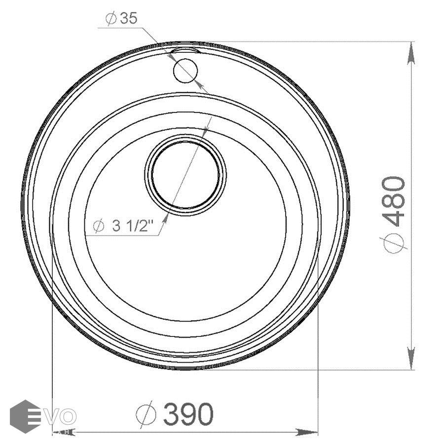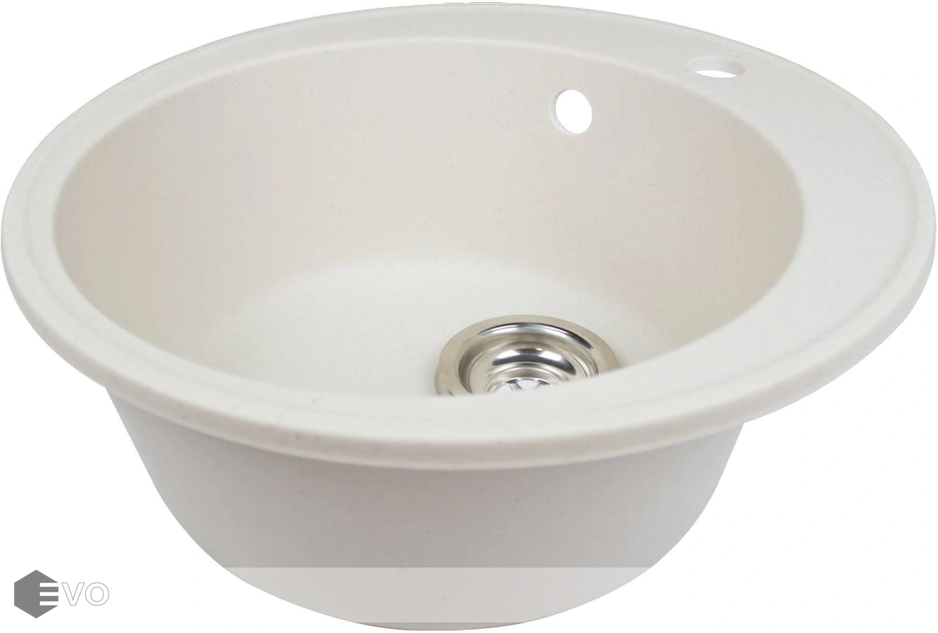 Круглая необорачиваемая мойка рассчитана для установки над столешницей. Размеры модели (ВxШxГ): 18x48x48 см, предусмотрены отверстия для смесителя и сантехнической фурнитуры. Круглая форма чаши глубиной 18 см обеспечивает максимальную полезную площадь, что дает возможность комфортно мыть крупную посуду. На внутренней стенке расположен логотип производителя, который подчеркивает элегантный дизайн изделия. В комплектацию включены выпуск с переливом и гофрированная трубка между ними, а также резиновые уплотнители.