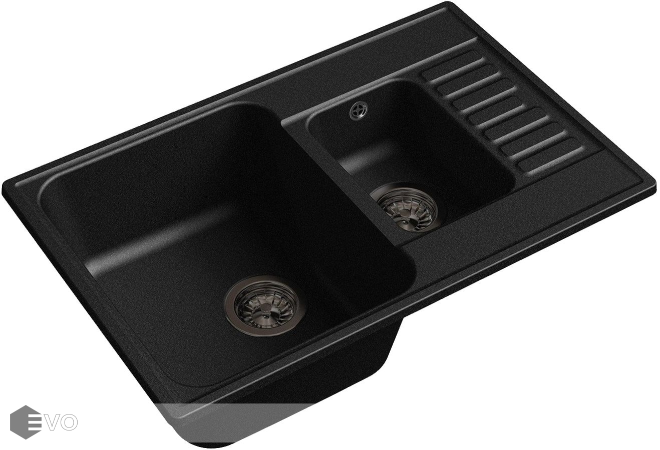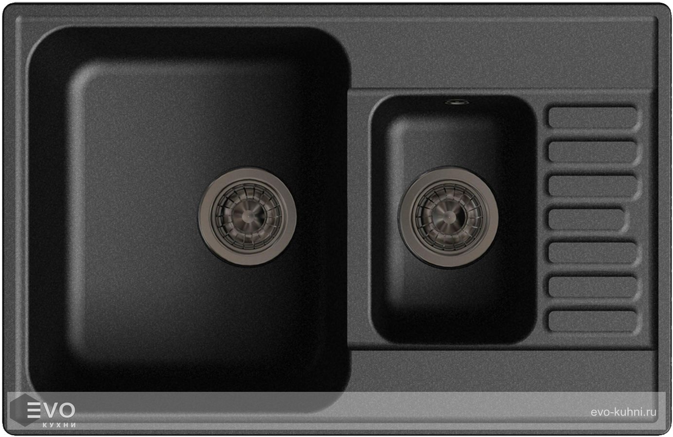 Две прямоугольных чаши (глубиной 18 и 12 см) обеспечивают комфортную эксплуатацию изделия. В комплекте поставляются выпуск с переливом и гофрированная трубка, а также все необходимые для установки резиновые уплотнители, диаметр сливного отверстия — 9 см.