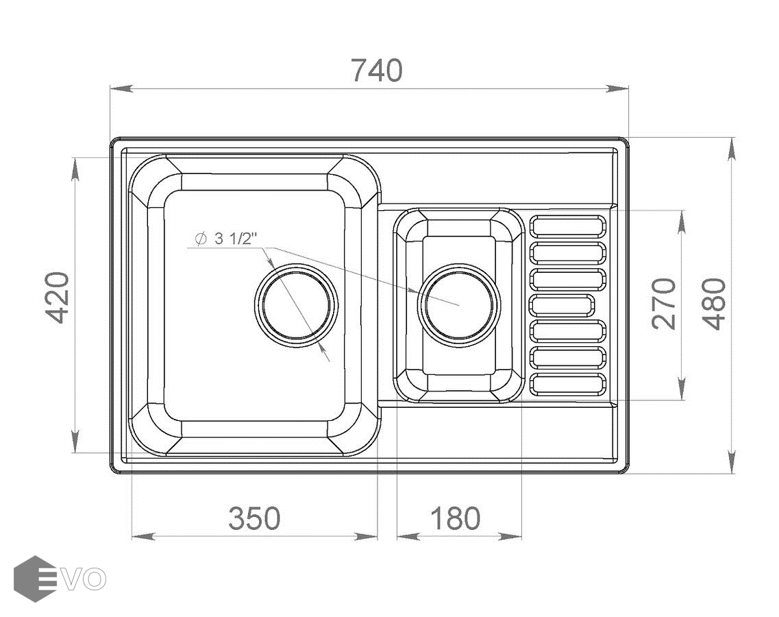 - Размеры чаш: 350х420/180х270 мм