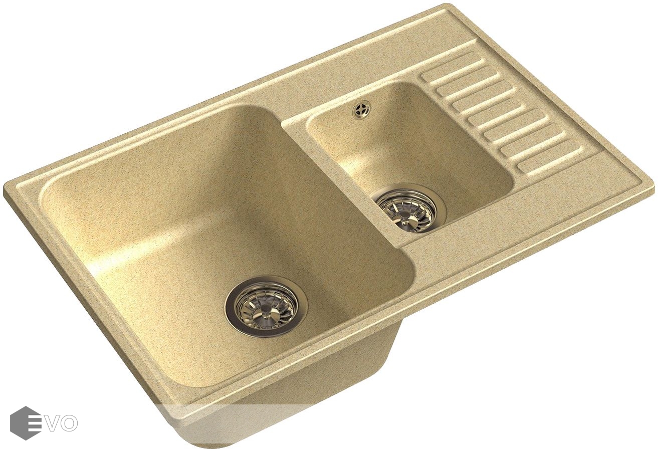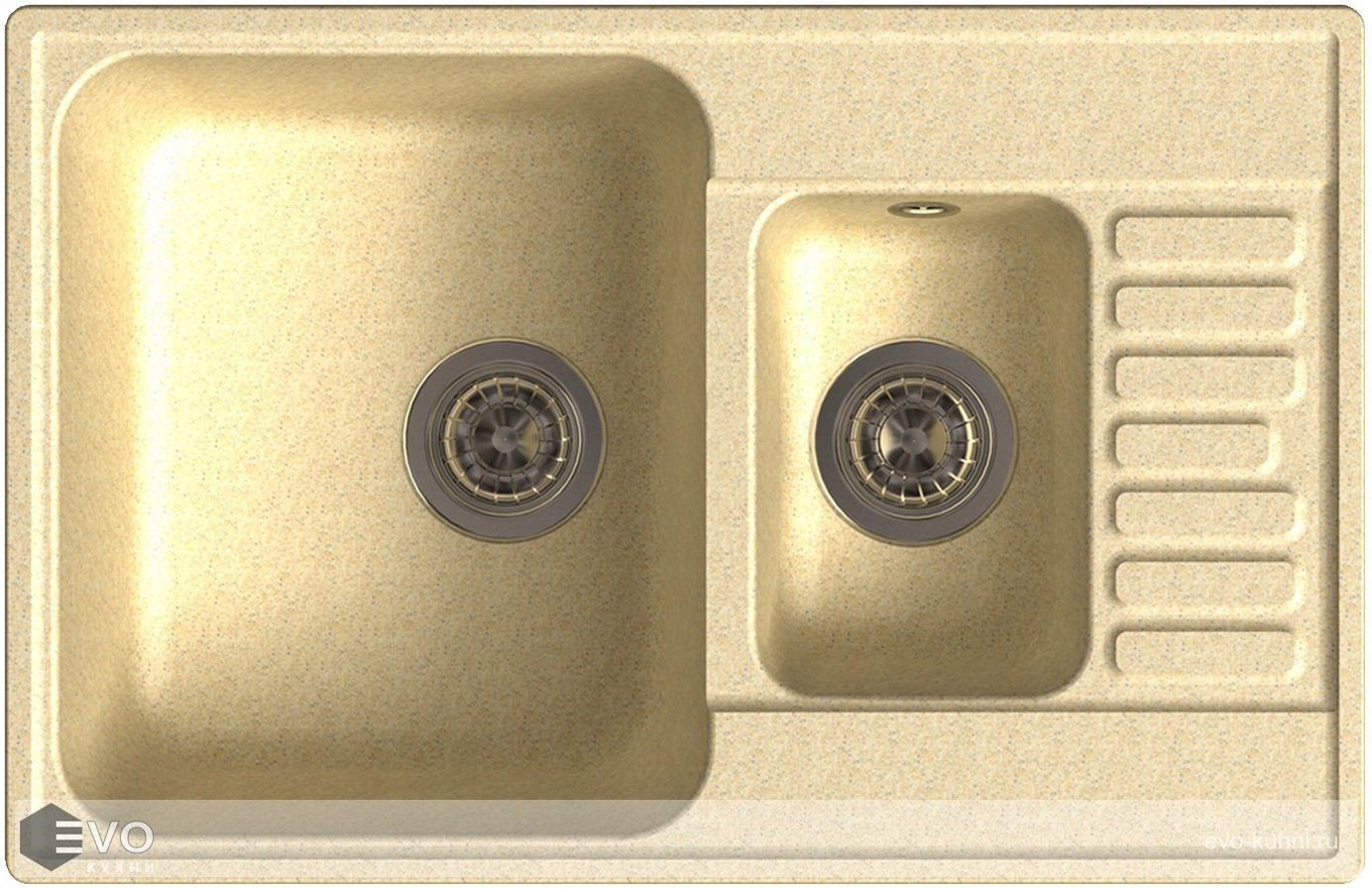 Модель цвета слоновой кости с двумя чашами разного размера (глубиной 18 и 12 см) очень комфортна в эксплуатации. Оборачиваемая мойка может быть направлена во время монтажа крылом в левую или правую сторону (отверстие для смесителя высверливается в зависимости от варианта врезки). В комплектацию входят выпуск с переливом и гофрированная трубка для их соединения, а также все необходимые резиновые уплотнители, диаметр сливного отверстия — 9 см.