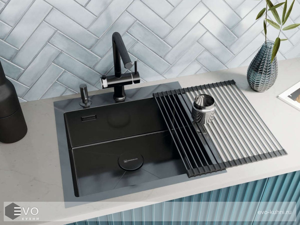 Корпус мойки обработан специальным противошумным составом и оснащен дополнительными резиновыми накладками с пяти сторон чаши.