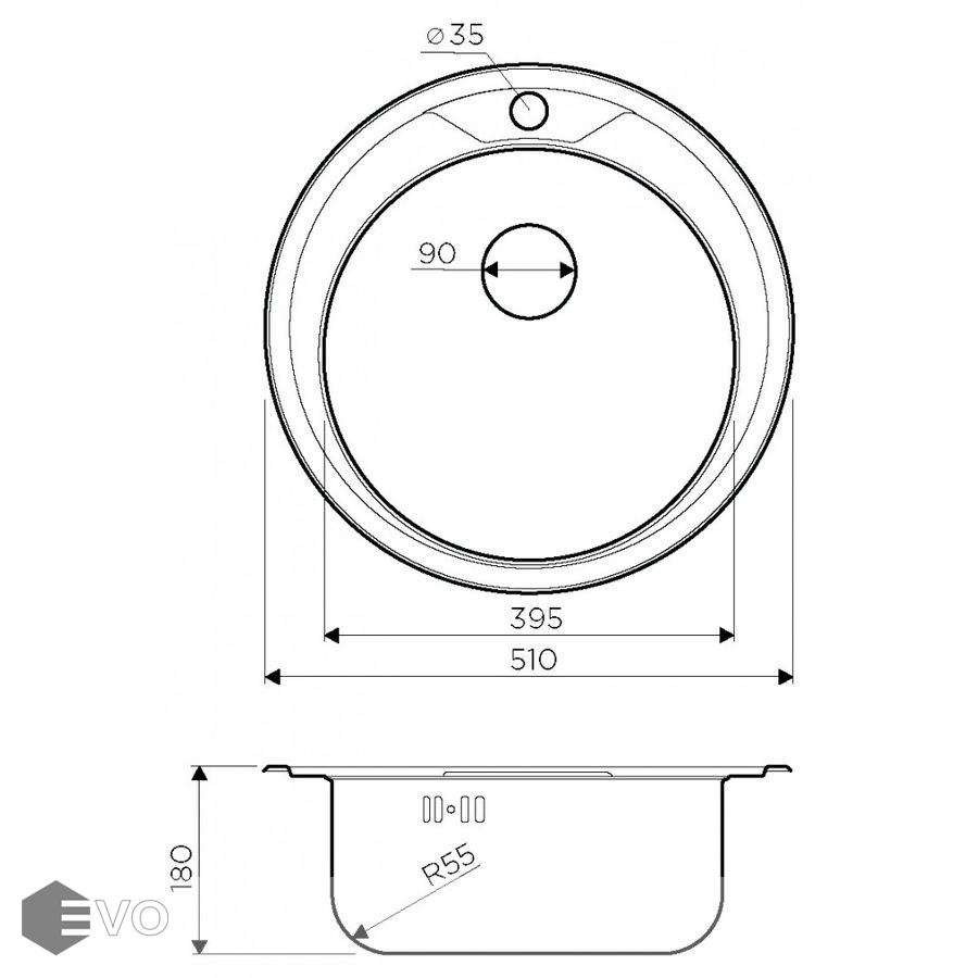 Размер мойки 510 мм