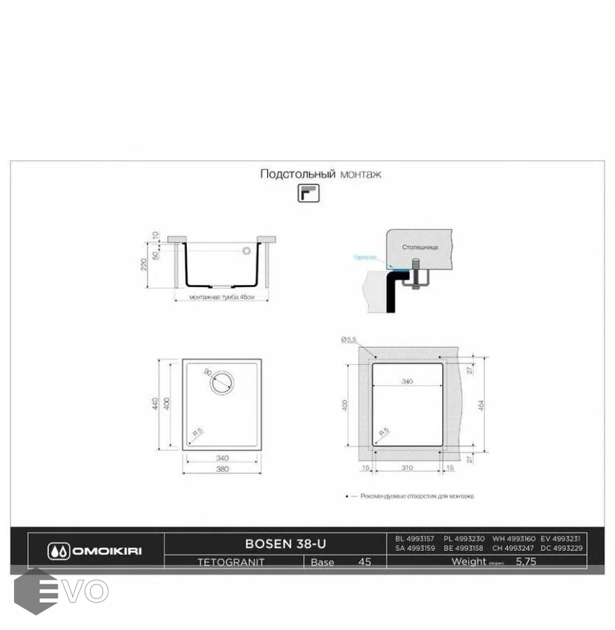 Мойка Omoikiri Bosen 38-U-GR Tetogranit/leningrad grey