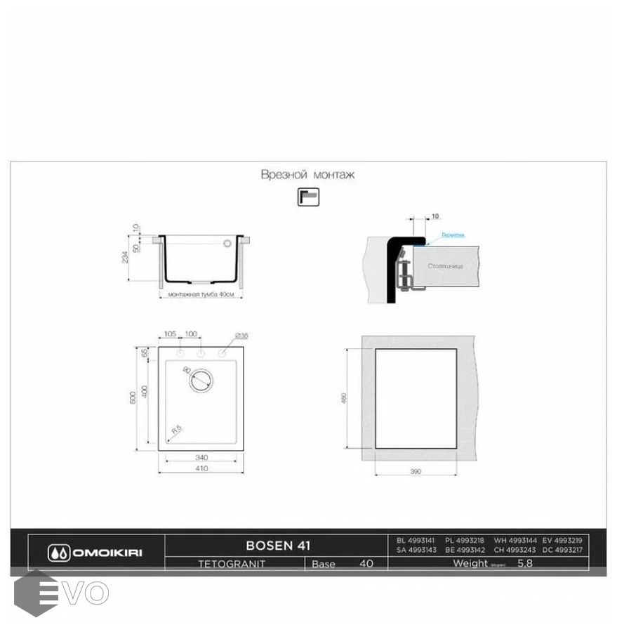 Мойка Omoikiri Bosen 41-GR Tetogranit/leningrad grey