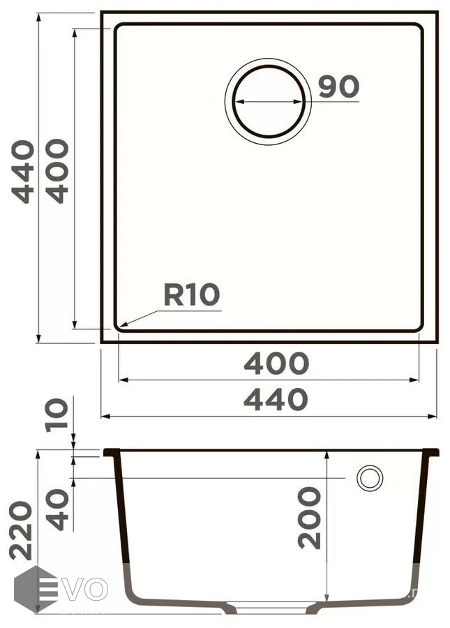- Размер мойки 440x440