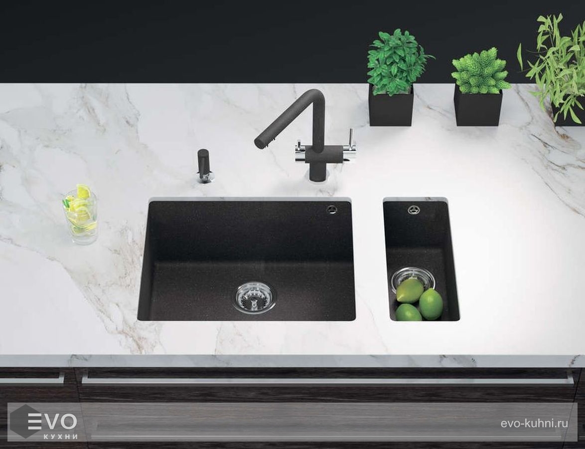 TETOGRANIT® — это связь гранита с акриловой смолой, которая выявляет лучшие качества гранита: выдерживает высокие температуры и удары. При изготовлении таких моек применяется специальный способ окрашивания частиц гранита: пигмент не только наносится на их поверхность, но и проникает во внутренние структуры камня благодаря запеканию при температуре выше 700 градусов. TETOGRANIT® имеет очень плотную структуру, что делает поверхность мойки удивительно гладкой и ровной. Невероятная гладкость препятствует образованию любых видов загрязнений, поэтому такие мойки легко моются и чистятся. Мойки обладают повышенной устойчивостью к появлению бактерий, грибка благодаря внедрению уникального компонента — TETORON®. Этот полимер обволакивает гранит и защищает его от воздействия агрессивных внешних факторов. Дополнительно в состав акриловой смолы входят ионы серебра, которые препятствуют размножению бактерий на поверхности мойки. Каждая мойка из TETOGRANIT® гарантированно сохраняет свой первоначальный цвет в течение всего срока службы. Они прекрасно выдерживают воздействие агрессивной среды (моющих средств, острых предметов). Благодаря смешению состава с акриловой смолой, мойки TETOGRANIT® выдерживают высокие температуры до 280°С.