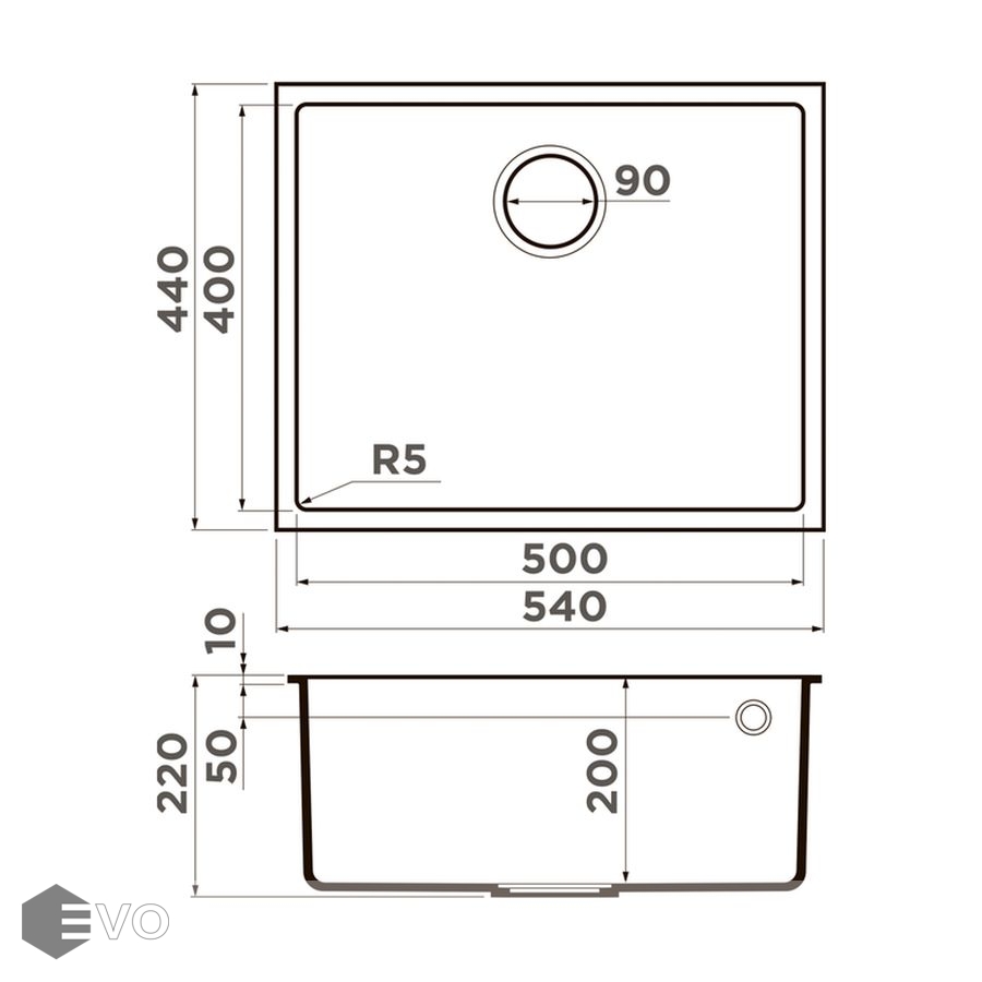 - Размер мойки 540x440