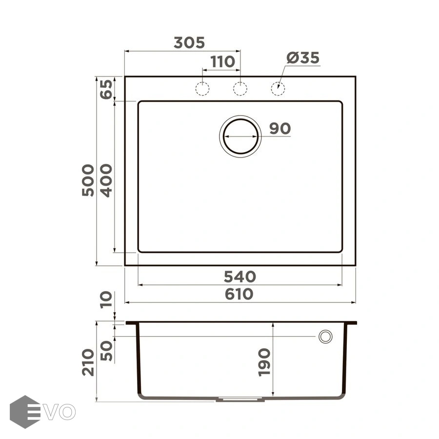 - Глубина чаши, мм: 190