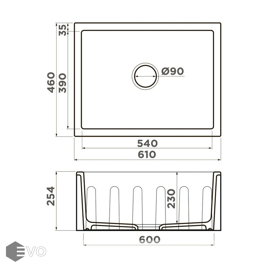 - Размер мойки, мм 610х460